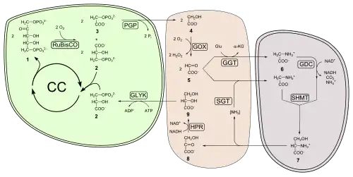 The efficiency of both light and dark reactions can be measured, but the relationship between the two can be complex. For example, the light reaction creates ATP and NADPH energy molecules, which C3 plants can use for carbon fixation or photorespiration.[44] Electrons may also flow to other electron sinks.[45][46][47] For this reason, it is not uncommon for authors to differentiate between work done under non-photorespiratory conditions and under photorespiratory conditions.[48][49][50]