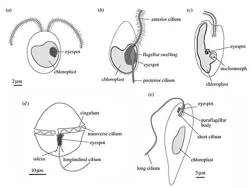 - ↑ Kreimer, Georg (2009). "The green algal eyespot apparatus: A primordial visual system and more?". Current Genetics. 55 (1): 19–43. doi:10.1007/s00294-008-0224-8. PMID 19107486. S2CID 8011518.