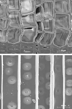 - ↑ B. A. Meylan, Brian Geoffrey Butterfield (1972). Three-dimensional Structure of Wood: A Scanning Electron Microscope Study; Volume 2 of Syracuse wood science series (illustrated ed.). Syracuse University Press. p. 12. ISBN 9780815650300.