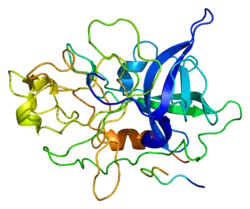 Plasminogen activators are serine proteases that catalyze the activation of plasmin via proteolytic cleavage of its zymogen form plasminogen. Plasmin is an important factor in fibrinolysis, the breakdown of fibrin polymers formed during blood clotting. There are two main plasminogen activators: urokinase (uPA) and tissue plasminogen activator (tPA). Tissue plasminogen activators are used to treat medical conditions related to blood clotting including embolic or thrombotic stroke, myocardial infarction, and pulmonary embolism.[1]