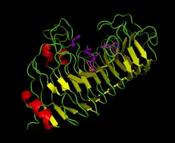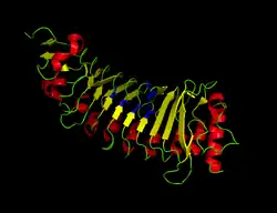 - 1 2 3 Di Matteo A, Federici L, Mattei B, Salvi G, Johnson KA, Savino C, De Lorenzo G, Tsernoglou D, Cervone F (August 2003). "The crystal structure of polygalacturonase-inhibiting protein (PGIP), a leucine-rich repeat protein involved in plant defense". Proceedings of the National Academy of Sciences of the United States of America. 100 (17): 10124–8. Bibcode:2003PNAS..10010124D. doi:10.1073/pnas.1733690100. PMC 187787. PMID 12904578.