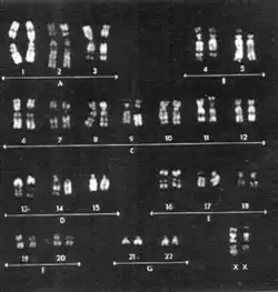 - ↑ Yunis JJ, Sanchez O (1973). "G-banding and chromosome structure". Chromosoma. 44 (1): 15–23. doi:10.1007/BF00372570. PMID 4130183. S2CID 8711896.