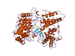 Prenyltransferases (PTs) are a class of enzymes that transfer allylic prenyl groups to acceptor molecules. Prenyl transferases commonly refer to isoprenyl diphosphate syntheses (IPPSs).[2][3] Prenyltransferases are a functional category and include several enzyme groups that are evolutionarily independent.