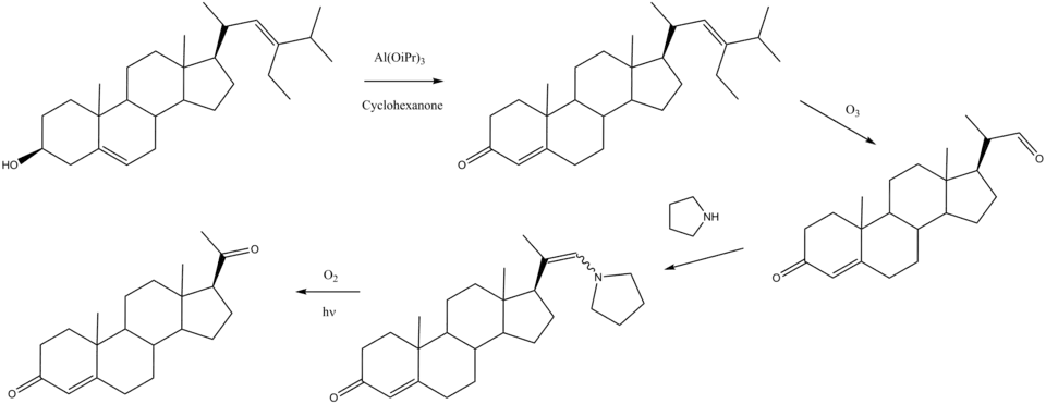 - ↑ Sundararaman P, Djerassi C (October 1977). "A convenient synthesis of progesterone from stigmasterol". The Journal of Organic Chemistry. 42 (22): 3633–3634. doi:10.1021/jo00442a044. PMID 915584.