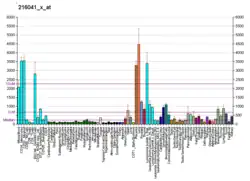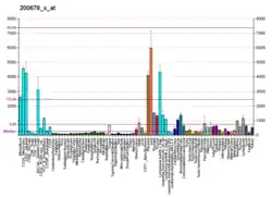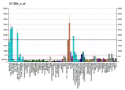 Progranulin is expressed in a wide variety of cell types both in the periphery and in the central nervous system. Progranulin expression is low in early development, but increases as cells mature.[10] Cell types expressing progranulin include neurons, microglia, astrocytes and endothelial cells.[11] Progranulin has been found to be highly expressed in microglia and up-regulated during injury[11][10] Within the brain, progranulin mRNA is highly expressed in pyramidal, hippocampal and Purkinje cells cells.[8]