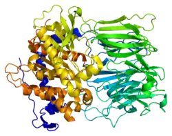 - ↑ Stepniak D, Spaenij-Dekking L, Mitea C, et al. (Oct 2006). "Highly efficient gluten degradation with a newly identified prolyl endoprotease: implications for celiac disease". Am J Physiol Gastrointest Liver Physiol. 291 (4): G621–9. doi:10.1152/ajpgi.00034.2006. PMID 16690904.