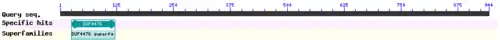 PROSER1 is composed primarily of alpha helices, beta sheets, and coils. The protein is largely coiled. The DUF is composed mainly of alpha helices and coils. It has slightly fewer beta sheets compared to the protein as a whole.[15]