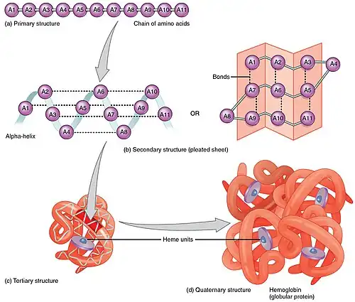 - Primary structure: the amino acid sequence. A protein is a polyamide.