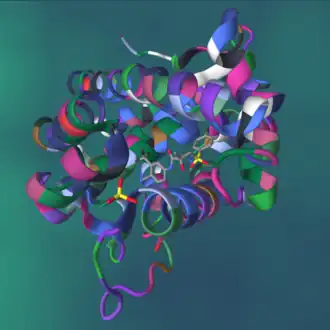 - ↑ Bohl CE, Gao W, Miller DD, Bell CE, Dalton JT (April 2005). "Structural basis for antagonism and resistance of bicalutamide in prostate cancer". Proceedings of the National Academy of Sciences of the United States of America. 102 (17): 6201–6. Bibcode:2005PNAS..102.6201B. doi:10.1073/pnas.0500381102. PMC 1087923. PMID 15833816.