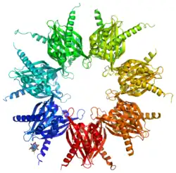 Eukaryotic protein kinases are enzymes that belong to a very extensive family of proteins that share a conserved catalytic core.[5][6][7][8] The structures of over 280 human protein kinases have been determined.[9]