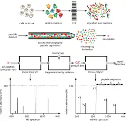 - ↑ P. Hernandez, M. Müller & R. D. Appel (2006). "Automated protein identification by tandem mass spectrometry: Issues and strategies". Mass Spectrometry Reviews. 25 (2): 235–254. Bibcode:2006MSRv...25..235H. doi:10.1002/mas.20068. PMID 16284939.