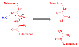 {{cite journal}}: CS1 maint: numeric names: authors list (link) - ↑ Daniel. Kahne; W. Clark Still (1988). "Hydrolysis of a peptide bond in neutral water". J. Am. Chem. Soc. 110 (22): 7529–7534. Bibcode:1988JAChS.110.7529K. doi:10.1021/ja00230a041.