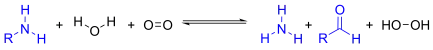 - amine + H2O + O2 ⇌ aldehyde + NH3 + H2O2