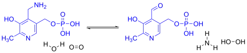- pyridoxamine 5′-phosphate + H2O + O2 → pyridoxal 5′-phosphate + NH3 + H2O2