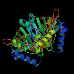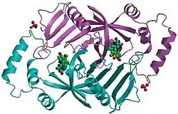 - ↑ PDB: 1jnw; di Salvo ML, Ko TP, Musayev FN, Raboni S, Schirch V, Safo MK (January 2002). "Active site structure and stereospecificity of Escherichia coli pyridoxine-5'-phosphate oxidase". Journal of Molecular Biology. 315 (3): 385–97. doi:10.1006/jmbi.2001.5254. PMID 11786019.