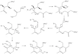 - ↑ Mukherjee T, Hanes J, Tews I, Ealick SE, Begley TP (November 2011). "Pyridoxal phosphate: biosynthesis and catabolism". Biochimica et Biophysica Acta (BBA) - Proteins and Proteomics. 1814 (11): 1585–96. doi:10.1016/j.bbapap.2011.06.018. PMID 21767669.