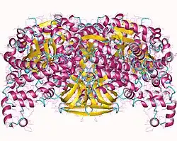 - 1 2 Herzberg O, Chen CC, Kapadia G, McGuire M, Carroll LJ, Noh SJ, Dunaway-Mariano D (April 1996). "Swiveling-domain mechanism for enzymatic phosphotransfer between remote reaction sites". Proceedings of the National Academy of Sciences of the United States of America. 93 (7): 2652–7. Bibcode:1996PNAS...93.2652H. doi:10.1073/pnas.93.7.2652. PMC 39685. PMID 8610096.