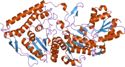 - ↑ Ciszak EM, Korotchkina LG, Dominiak PM, Sidhu S, Patel MS (Jun 2003). "Structural basis for flip-flop action of thiamin pyrophosphate-dependent enzymes revealed by human pyruvate dehydrogenase". The Journal of Biological Chemistry. 278 (23): 21240–6. doi:10.1074/jbc.M300339200. hdl:2060/20030106063. PMID 12651851.