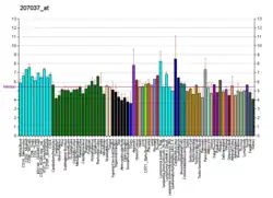 RANK is constitutively expressed in skeletal muscle, thymus, liver, colon, small intestine, adrenal gland, osteoclast, mammary gland epithelial cells, prostate, vascular cell,[5] and pancreas. Most commonly, activation of NF-κB is mediated by RANKL, but over-expression of RANK alone is sufficient to activate the NF-κB pathway.[6]
