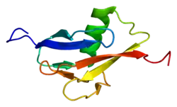 - ↑ Pugh DJ, Ab E, Faro A, Lutya PT, Hoffmann E, Rees DJ (Feb 2006). "DWNN, a novel ubiquitin-like domain, implicates RBBP6 in mRNA processing and ubiquitin-like pathways". BMC Structural Biology. 6: 1. doi:10.1186/1472-6807-6-1. PMC 1360078. PMID 16396680.