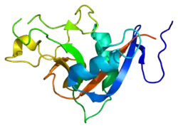 - ↑ Dusetti NJ, Frigerio JM, Fox MF, Swallow DM, Dagorn JC, Iovanna JL (January 1994). "Molecular cloning, genomic organization, and chromosomal localization of the human pancreatitis-associated protein (PAP) gene". Genomics. 19 (1): 108–114. doi:10.1006/geno.1994.1019. PMID 8188210.