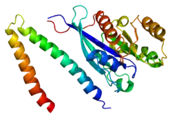 - 1 2 Cantalupo G, Alifano P, Roberti V, Bruni CB, Bucci C (February 2001). "Rab-interacting lysosomal protein (RILP): the Rab7 effector required for transport to lysosomes". EMBO J. 20 (4): 683–93. doi:10.1093/emboj/20.4.683. PMC 145419. PMID 11179213.