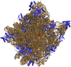 In this fashion, RNAs can achieve chemical catalysis (like enzymes).[9] For instance, determination of the structure of the ribosome—an RNA-protein complex that catalyzes the assembly of proteins—revealed that its active site is composed entirely of RNA.[10]