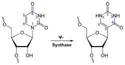 - ↑ King TH, Liu B, McCully RR, Fournier MJ (February 2003). "Ribosome structure and activity are altered in cells lacking snoRNPs that form pseudouridines in the peptidyl transferase center". Molecular Cell. 11 (2): 425–35. doi:10.1016/S1097-2765(03)00040-6. PMID 12620230.