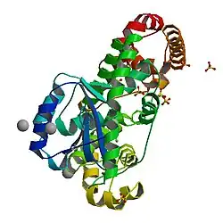 - 1 2 Zuo Y, Wang Y, Malhotra A (July 2005). "Crystal structure of Escherichia coli RNase D, an exoribonuclease involved in structured RNA processing". Structure. 13 (7): 973–84. doi:10.1016/j.str.2005.04.015. PMID 16004870.
