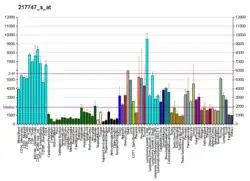 - ↑ Frigerio JM, Dagorn JC, Iovanna JL (Jul 1995). "Cloning, sequencing and expression of the L5, L21, L27a, L28, S5, S9, S10 and S29 human ribosomal protein mRNAs". Biochim Biophys Acta. 1262 (1): 64–8. doi:10.1016/0167-4781(95)00045-i. PMID 7772601.