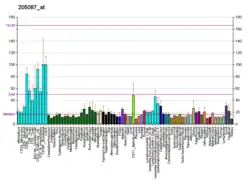 - ↑ Wiemann S, Weil B, Wellenreuther R, Gassenhuber J, Glassl S, Ansorge W, Bocher M, Blocker H, Bauersachs S, Blum H, Lauber J, Dusterhoft A, Beyer A, Kohrer K, Strack N, Mewes HW, Ottenwalder B, Obermaier B, Tampe J, Heubner D, Wambutt R, Korn B, Klein M, Poustka A (Mar 2001). "Toward a catalog of human genes and proteins: sequencing and analysis of 500 novel complete protein coding human cDNAs". Genome Res. 11 (3): 422–35. doi:10.1101/gr.GR1547R. PMC 311072. PMID 11230166.