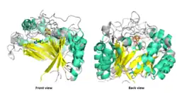 - ↑ Hänzelmann P, Schindelin H (August 2004). "Crystal structure of the S-adenosylmethionine-dependent enzyme MoaA and its implications for molybdenum cofactor deficiency in humans". Proceedings of the National Academy of Sciences of the United States of America. 101 (35): 12870–5. Bibcode:2004PNAS..10112870H. doi:10.1073/pnas.0404624101. PMC 516487. PMID 15317939.