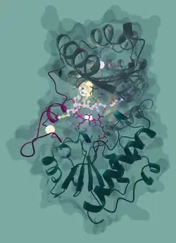 - ↑ Benjdia A, Heil K, Barends TR, Carell T, Schlichting I (October 2012). "Structural insights into recognition and repair of UV-DNA damage by Spore Photoproduct Lyase, a radical SAM enzyme". Nucleic Acids Research. 40 (18): 9308–18. doi:10.1093/nar/gks603. PMC 3467042. PMID 22761404.