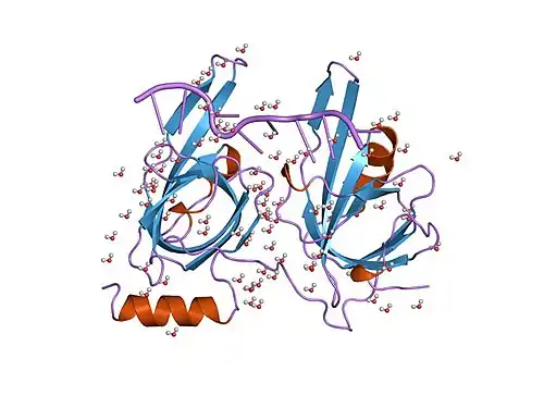 - 1 2 Swan MK, Johnson RE, Prakash L, Prakash S, Aggarwal AK (September 2009). "Structural basis of high-fidelity DNA synthesis by yeast DNA polymerase delta". Nat. Struct. Mol. Biol. 16 (9): 979–86. doi:10.1038/nsmb.1663. PMC 3055789. PMID 19718023.