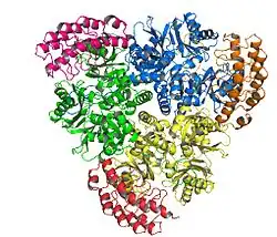 - ↑ Long F, Su CC, Zimmermann MT, Boyken SE, Rajashankar KR, Jernigan RL, Yu EW (September 2010). "Crystal structures of the CusA efflux pump suggest methionine-mediated metal transport". Nature. 467 (7314): 484–8. Bibcode:2010Natur.467..484L. doi:10.1038/nature09395. PMC 2946090. PMID 20865003.