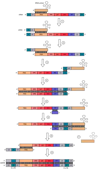 - ↑ Telesnitsky A, Goff SP (1993). "Strong-stop strand transfer during reverse transcription". In Skalka MA, Goff SP (eds.). Reverse transcriptase (1st ed.). New York: Cold Spring Harbor. p. 49. ISBN 978-0-87969-382-4.