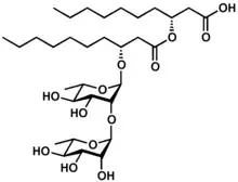 ![]() Rhamnolipid 1, an example of a di-rhamnolipid | |