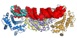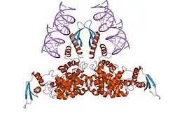 ![]() Ribonuclease III structure interacting with double stranded RNA. | |||||||||||