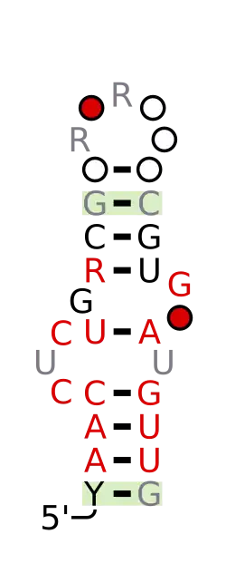 ![]() Consensus secondary structure and sequence conservation of L19-Flavobacteria ribosomal protein leader | |