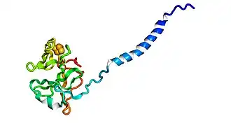 Rieske proteins are iron–sulfur protein (ISP) components of cytochrome bc1 complexes and cytochrome b6f complexes and are responsible for electron transfer in some biological systems. John S. Rieske and co-workers first discovered the protein and in 1964 isolated an acetylated form of the bovine mitochondrial protein.[1] In 1979, Trumpower's team isolated the "oxidation factor" from bovine mitochondria and showed it was a reconstitutively-active form of the Rieske iron-sulfur protein.[2]