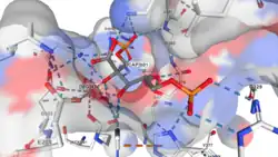 - ↑ Lodish H, Berk A, Zipursky SL, Matsudaira P, Baltimore D, Darnell JE (2000). "Molecular Cell Biology" (4th ed.). New York: W. H. Freeman & Co. Figure 16-48 shows a structural model of the active site, including the involvement of magnesium.