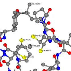 - ↑ Park IY, Youn B, Harley JL, Eidsness MK, Smith E, Ichiye T, Kang C (June 2004). "The unique hydrogen bonded water in the reduced form of Clostridium pasteurianum rubredoxin and its possible role in electron transfer". Journal of Biological Inorganic Chemistry. 9 (4): 423–428. doi:10.1007/s00775-004-0542-3. PMID 15067525.
