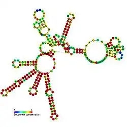 - ↑ Rivas E, Klein RJ, Jones TA, Eddy SR (September 2001). "Computational identification of noncoding RNAs in E. coli by comparative genomics". Current Biology. 11 (17): 1369–73. doi:10.1016/S0960-9822(01)00401-8. PMID 11553332.