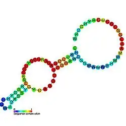 - ↑ Weinberg Z, Barrick JE, Yao Z, et al. (2007). "Identification of 22 candidate structured RNAs in bacteria using the CMfinder comparative genomics pipeline". Nucleic Acids Res. 35 (14): 4809–4819. doi:10.1093/nar/gkm487. PMC 1950547. PMID 17621584.