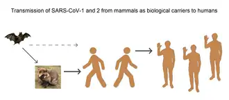 - ↑ Zhao J, Cui W, Tian BP (2020). "The Potential Intermediate Hosts for SARS-CoV-2". Frontiers in Microbiology. 11: 580137. doi:10.3389/fmicb.2020.580137. PMC 7554366. PMID 33101254.