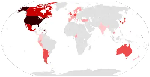 | World (46 countries) | Total: 51,966 | Total as of 1 July 2021 |