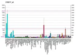 - ↑ Clark HF, Gurney AL, Abaya E, Baker K, Baldwin D, Brush J, et al. (October 2003). "The secreted protein discovery initiative (SPDI), a large-scale effort to identify novel human secreted and transmembrane proteins: a bioinformatics assessment". Genome Research. 13 (10): 2265–2270. doi:10.1101/gr.1293003. PMC 403697. PMID 12975309.