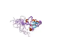 - 1 2 3 Ferguson AD, Labunskyy VM, Fomenko DE, Araç D, Chelliah Y, Amezcua CA, Rizo J, Gladyshev VN, Deisenhofer J (February 2006). "NMR structures of the selenoproteins Sep15 and SelM reveal redox activity of a new thioredoxin-like family". The Journal of Biological Chemistry. 281 (6): 3536–43. doi:10.1074/jbc.M511386200. PMID 16319061.