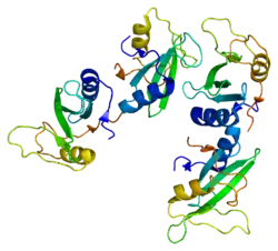 SH2 domain–containing protein 1A is a protein that in humans is encoded by the SH2D1A gene.[5][6][7] It is often called SLAM-associated protein (symbol SAP), where "SLAM" refers to signaling lymphocytic activation molecules. It is a SH2 domain–containing molecule (part of a family of such molecules) that plays a role in SLAM signaling. A putative function is as an adaptor for Fyn and competitor of phosphatases, leading to modulation of SLAM family function. SAP has been implicated in autoimmunity,[8] and a mutation of it is associated with X-linked lymphoproliferative disease. At least 32 disease-causing mutations in this gene have been discovered.[9]