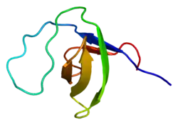 - ↑ Giachino C, Lantelme E, Lanzetti L, Saccone S, Bella Valle G, Migone N (July 1997). "A novel SH3-containing human gene family preferentially expressed in the central nervous system". Genomics. 41 (3): 427–34. doi:10.1006/geno.1997.4645. PMID 9169142.